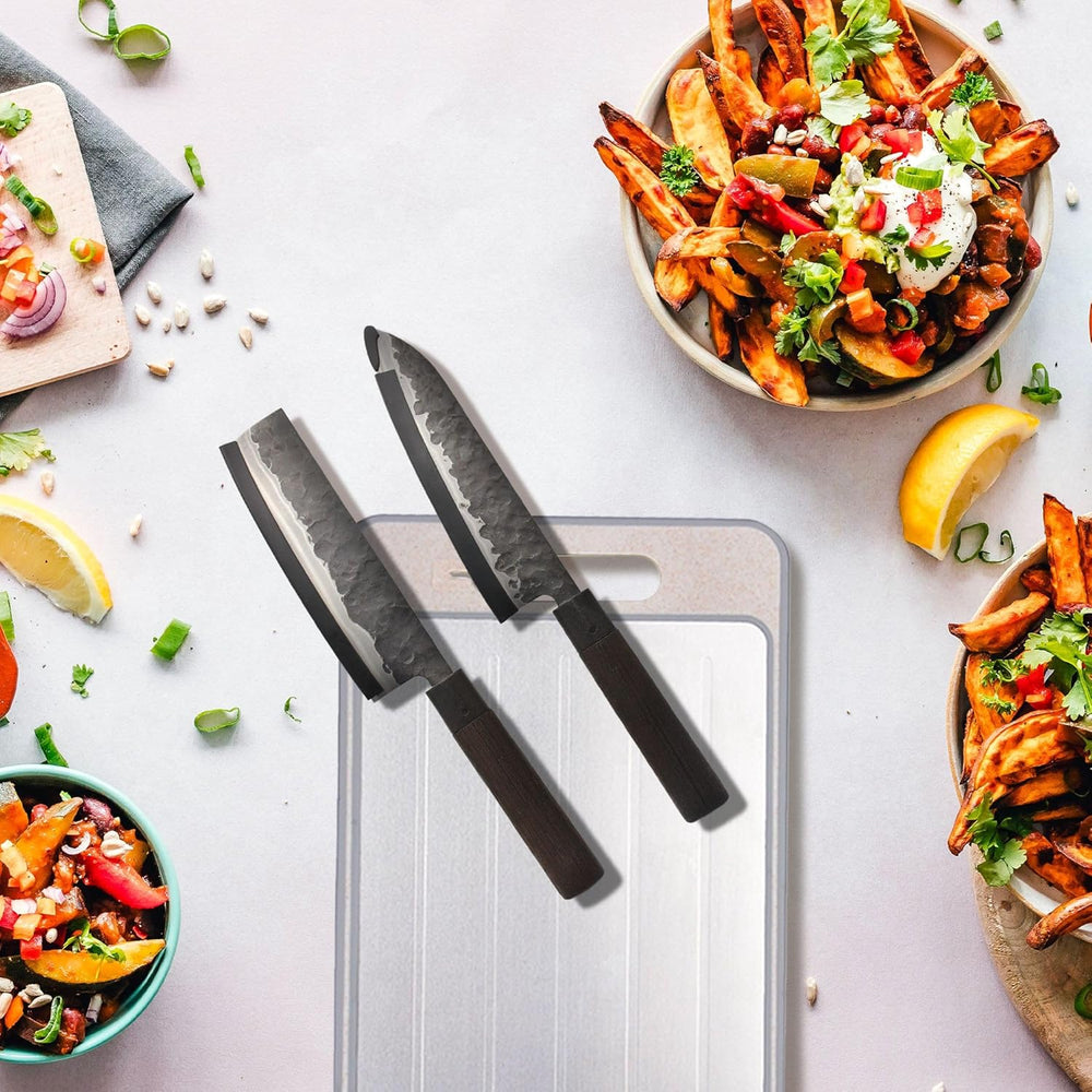 Chef Küchenmesser 18 cm - Japanisches Messer mit gehämmerter Stahlklinge 2.5 mm HCR Härte 58 - Profi
