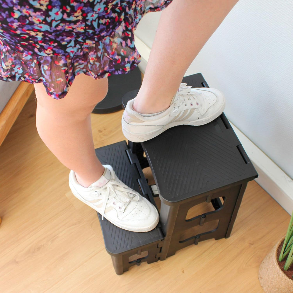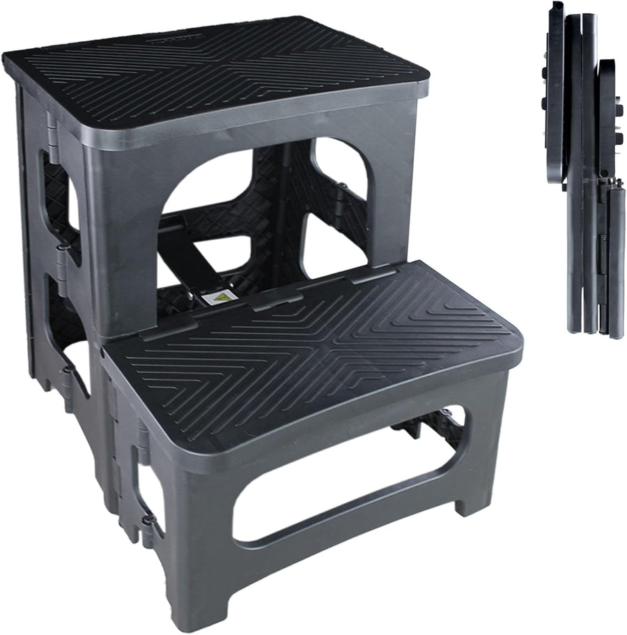 FISHTEC - Trittleiter, 2 Stufen, faltbar, breite Stufen, rutschfest, zusammenklappbar, Polypropylen,