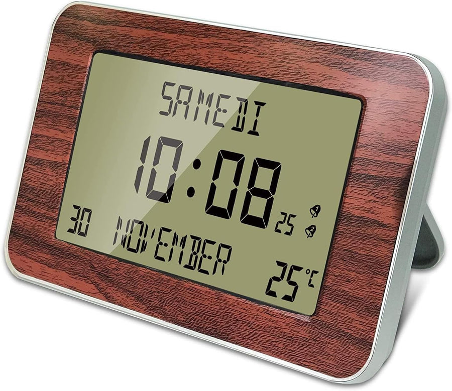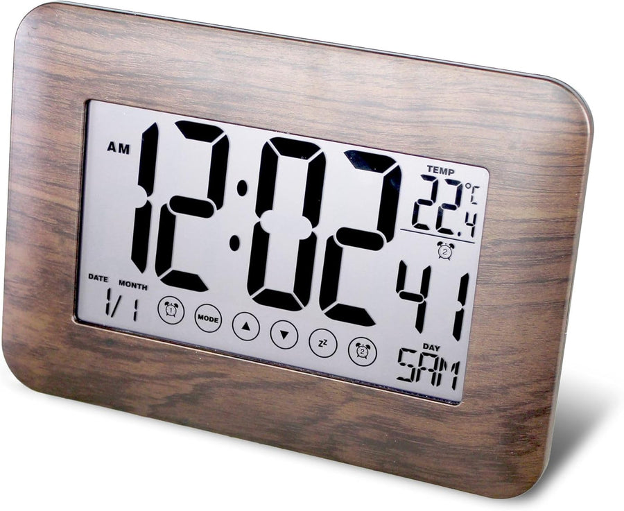 FISHTEC Funkuhr Wecker - Kalender mit Datum Tag und Uhrzeit - Grosse Anzeige - 2 Alarme - Temperatur