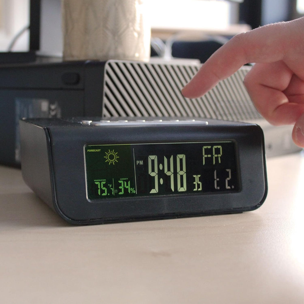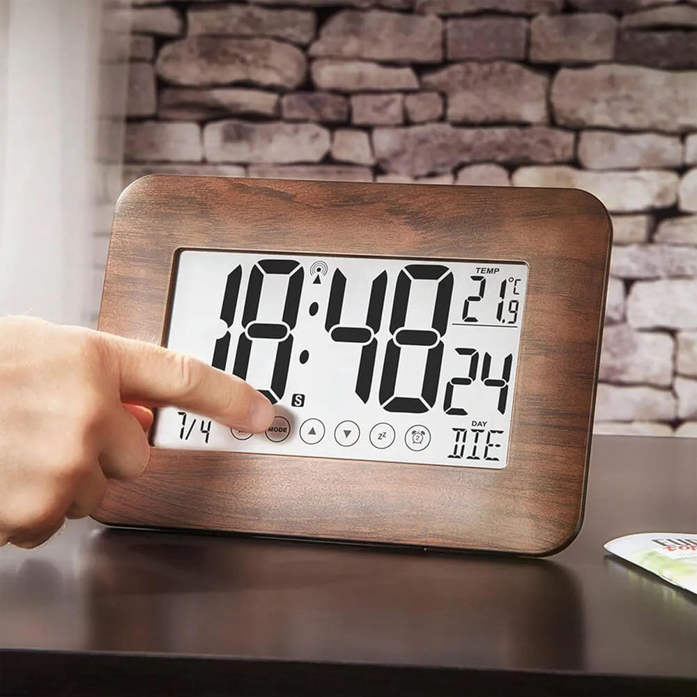 Digital Uhr Wecker, funkgesteuert mit Touchscreen - Kalenderanzeige: Datum, Tag, Uhrzeit + Temperatu