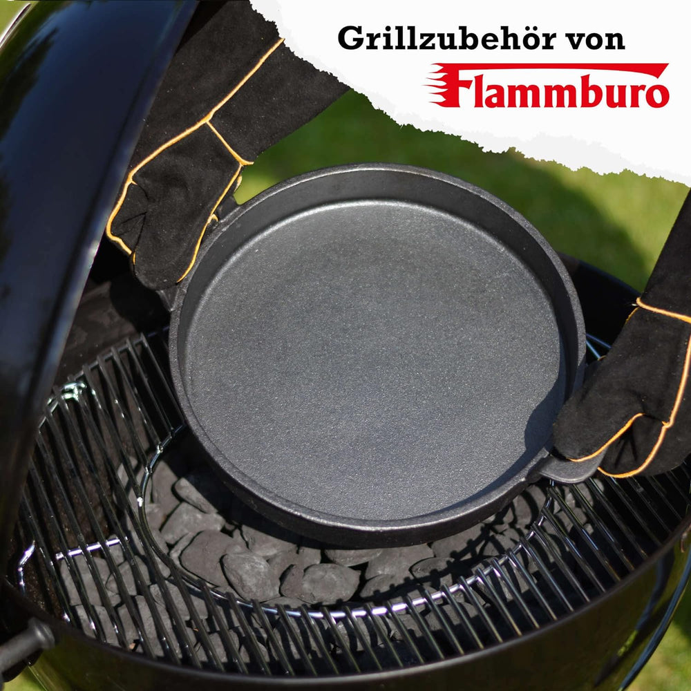 FLAMMBURO BBQ-System Pfanne Ø 30 cm – Gusseisen mit porzellanemaillierter Beschichtung – Für alle Pf
