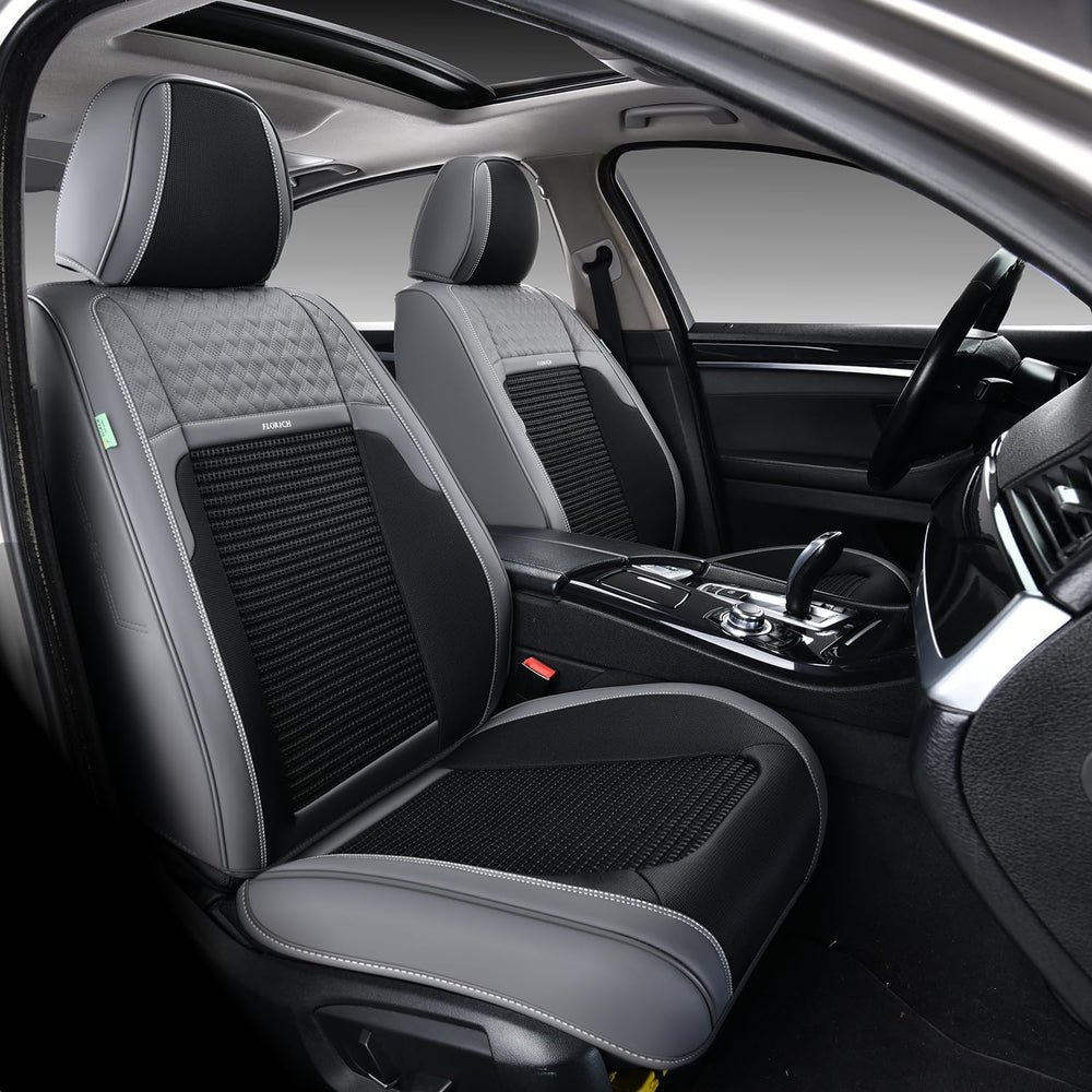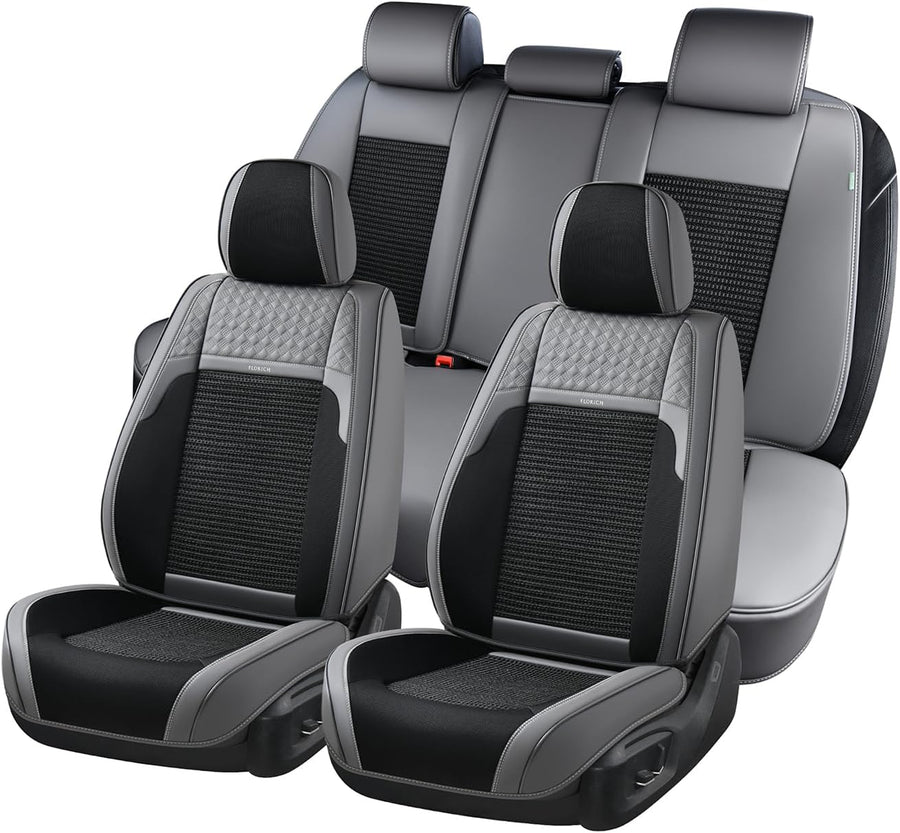 FLORICH Autositzbezüge, Atmungsaktive Leder und Stoff Sitzbeüge Set Vorne und Hinten 5 Stück, Univer