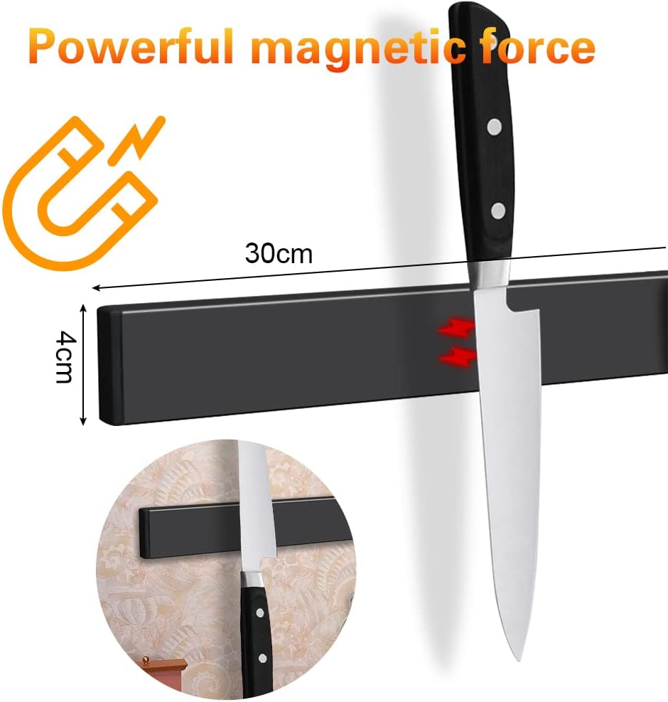 Magnetleiste Messer, FOGARI 30cm Messerhalter Magnetisch mit 3 Haken Edelstahl Messer Magnetleiste o