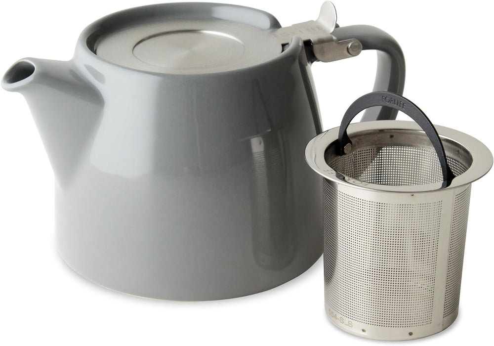 FORLIFE Curve Teekanne mit Teesieb, 1,3 l, Grau Gray, Gray