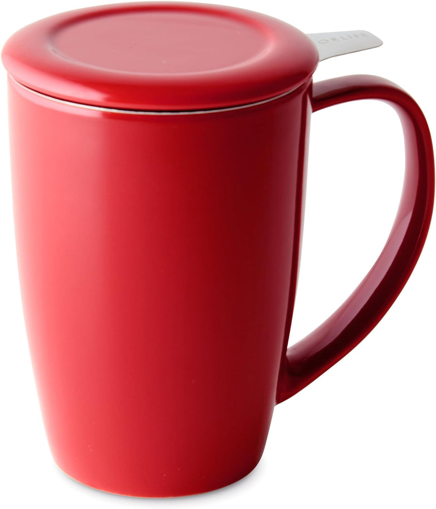 FORLIFE Curve Teetasse mit Teesieb und Deckel, 425 ml, Rot, Rot