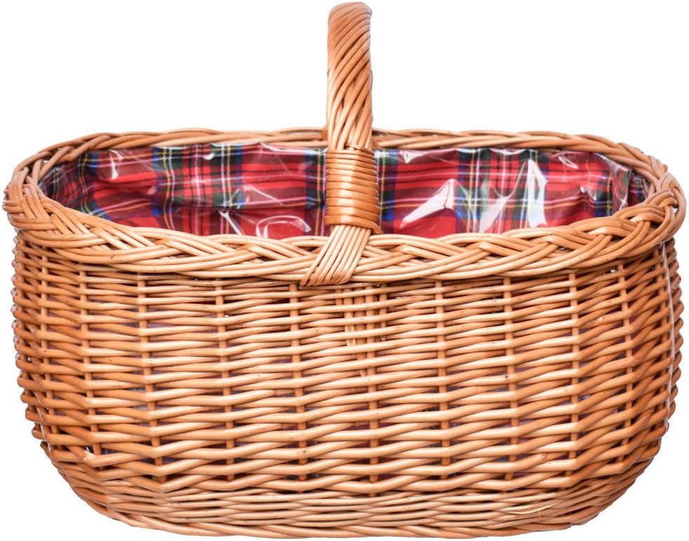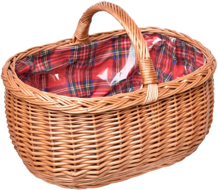 Einkaufskorb mit Stoffbezug Weidenkorb Autokorb Weide Korbwaren Korb Schottenkaro/Kariert (L) 51 x (
