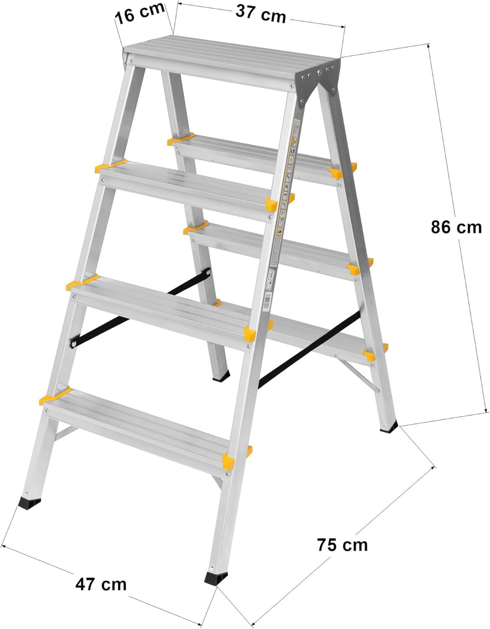 Zweiseitige Aluleiter Klappleiter Haushaltsleiter 2x4 Stehleiter Tragkraft 150kg TÜV | 4 Stufen / 15