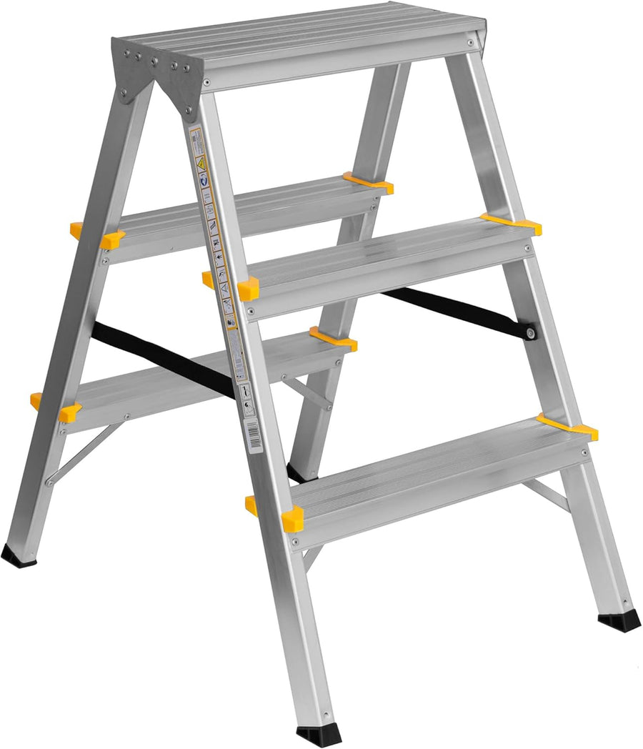 Aluleiter Trittleiter Klappleiter Zweiseitige Haushaltsleiter Stehleiter 3 Stufen TÜV 2x3 150KG