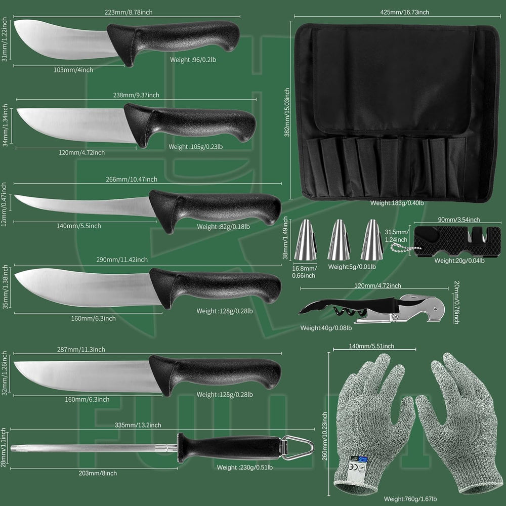 FULLHI 11PCS Metzger Messer Set, Anti-Rutsch-Metzger Ausbeinmesser Edelstahl Kochmesser Set, Fleisch