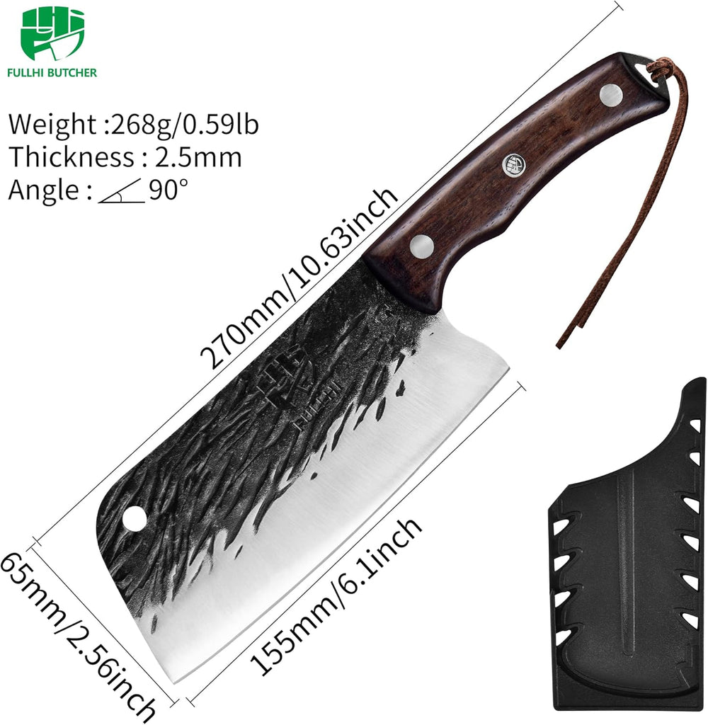 FULLHI Butcher Knife Hand geschmiedet schwere Fleischbeil Kochmesser mit Scheiden schwarz High Carbo