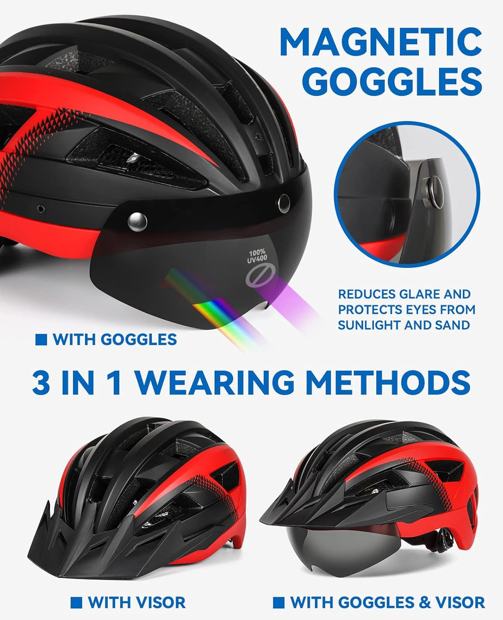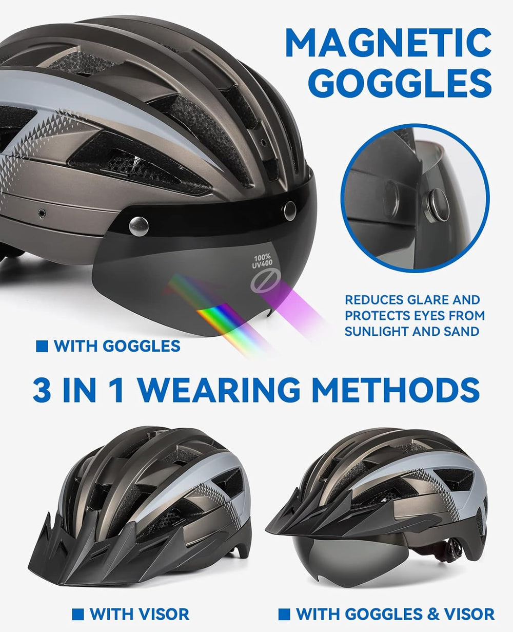 FUNWICT Fahrradhelm Herren Damen Helm Fahrrad mit abnehmbarer Magnetische Brille und Innenfutter, LE