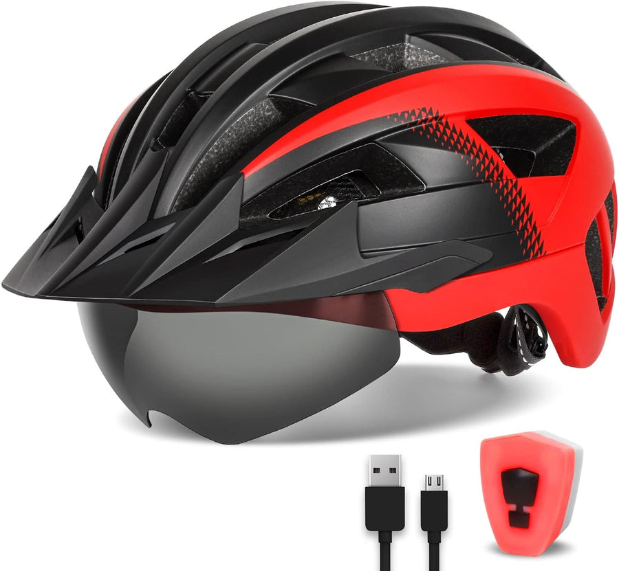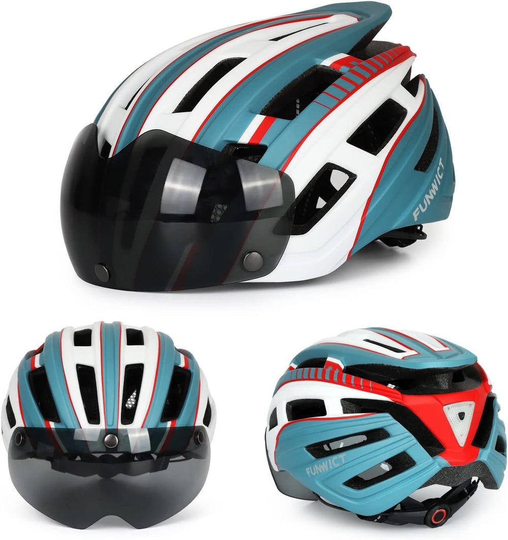 FUNWICT Fahrradhelm mit Visier für Herren Damen, Leichte Fahrradhelm mit Magnetischem Brille und USB