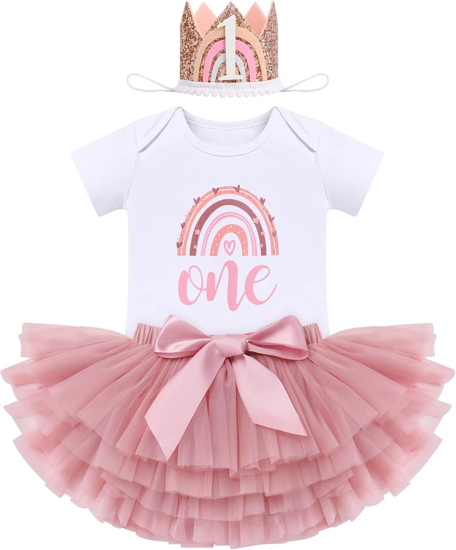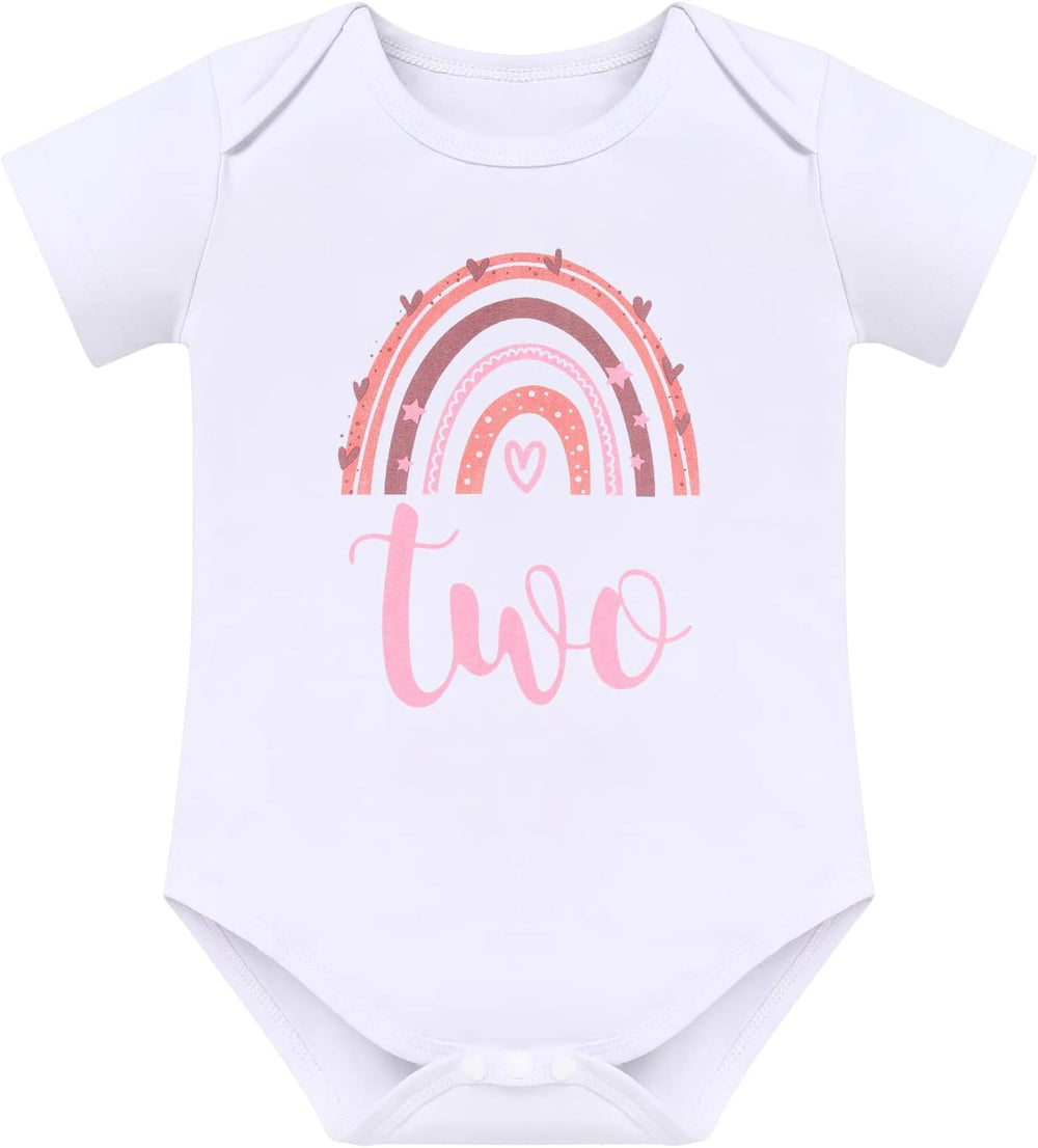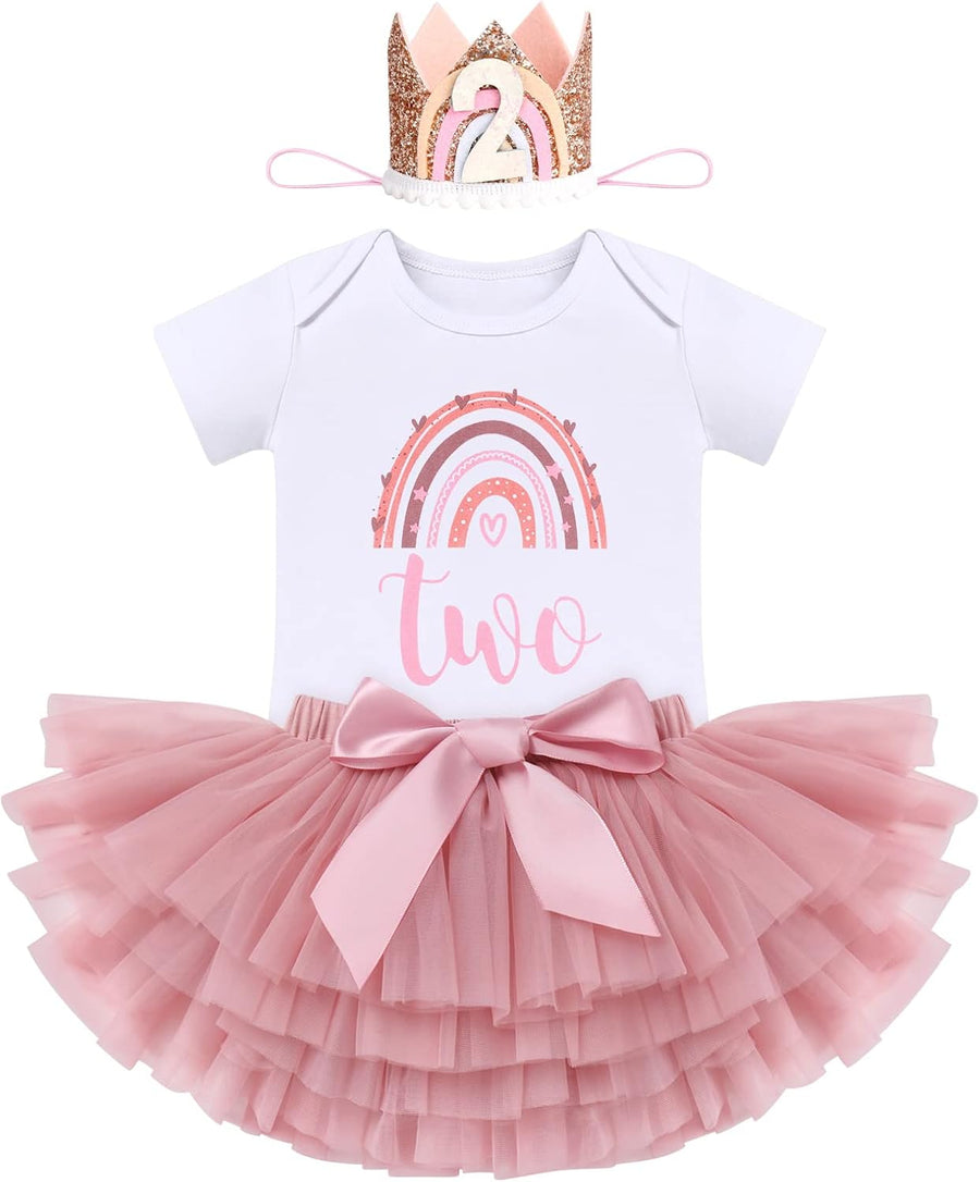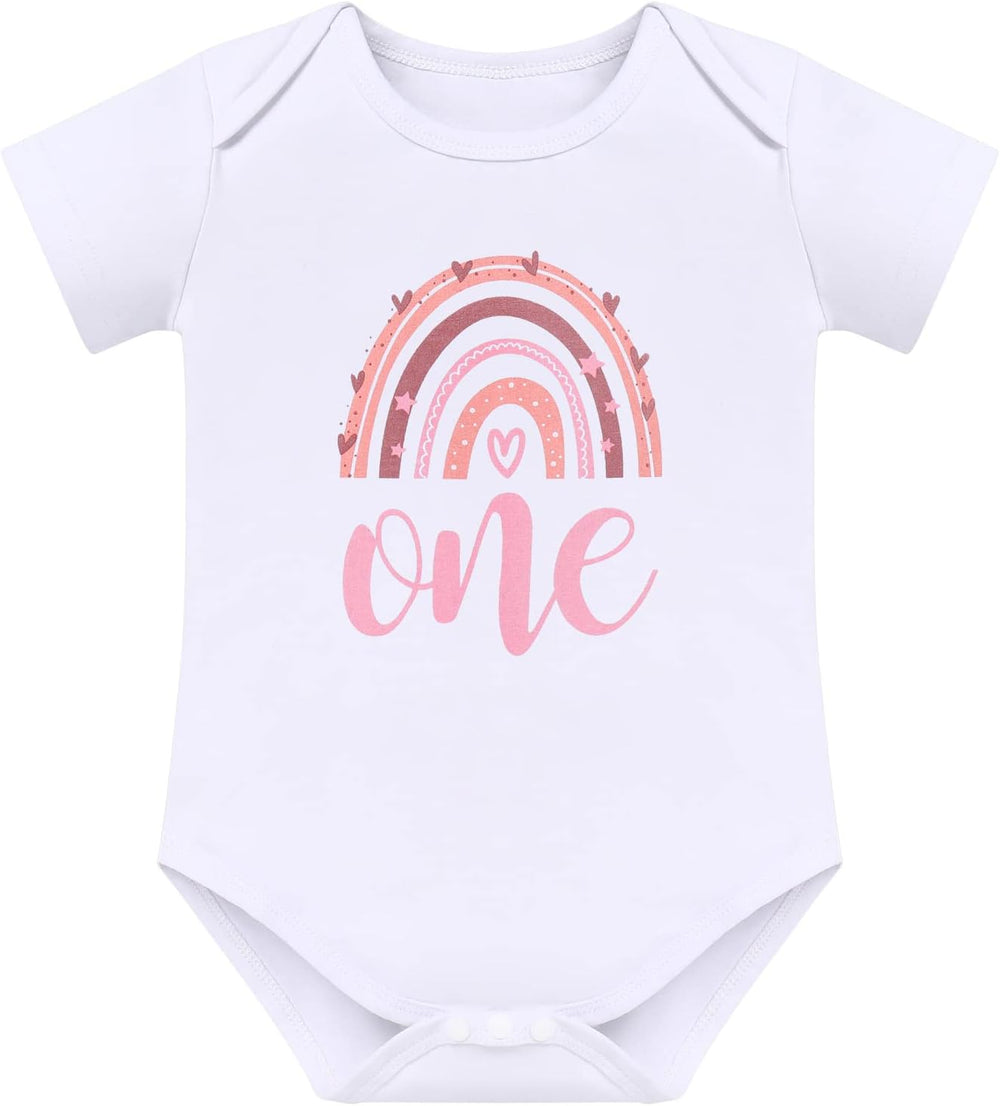 FYMNSI Baby Mädchen Boho Regenbogen 1. / 2. Geburtstag Outfit Kurzarm Strampler Tütü Rock Stirnband
