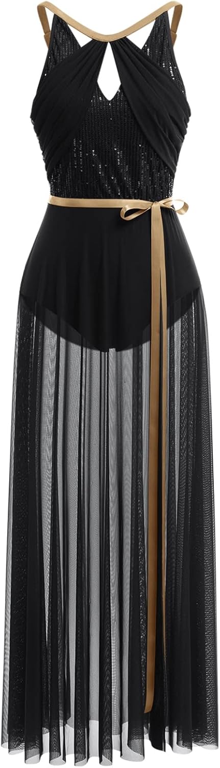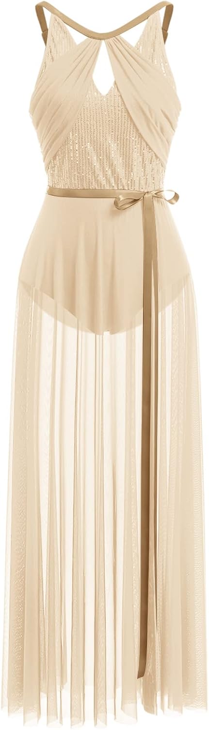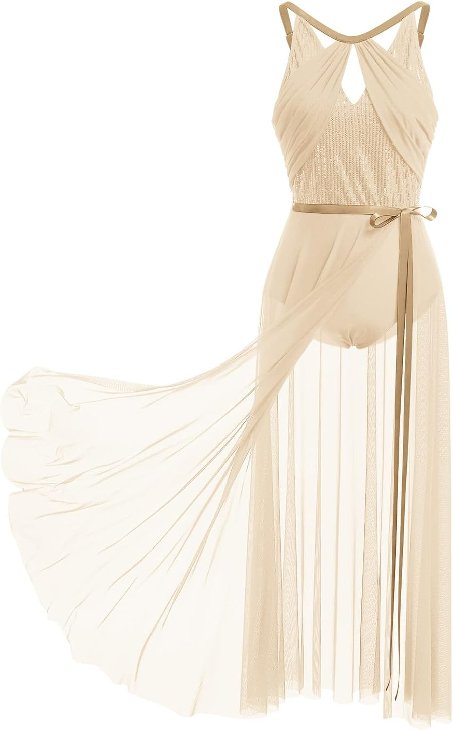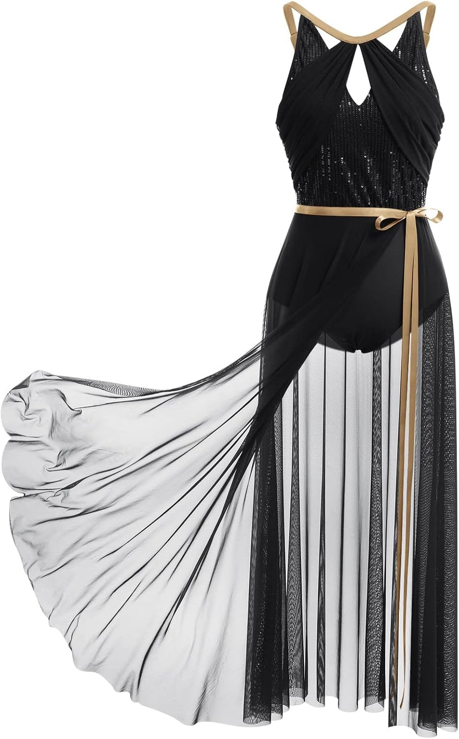 FYMNSI Damen Lyrisch Tanzkleid Ballettkleid Ärmellos Pailletten Trikot Mit Wickelrock Modern Contemp