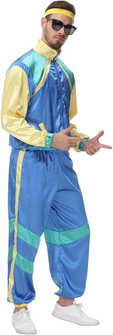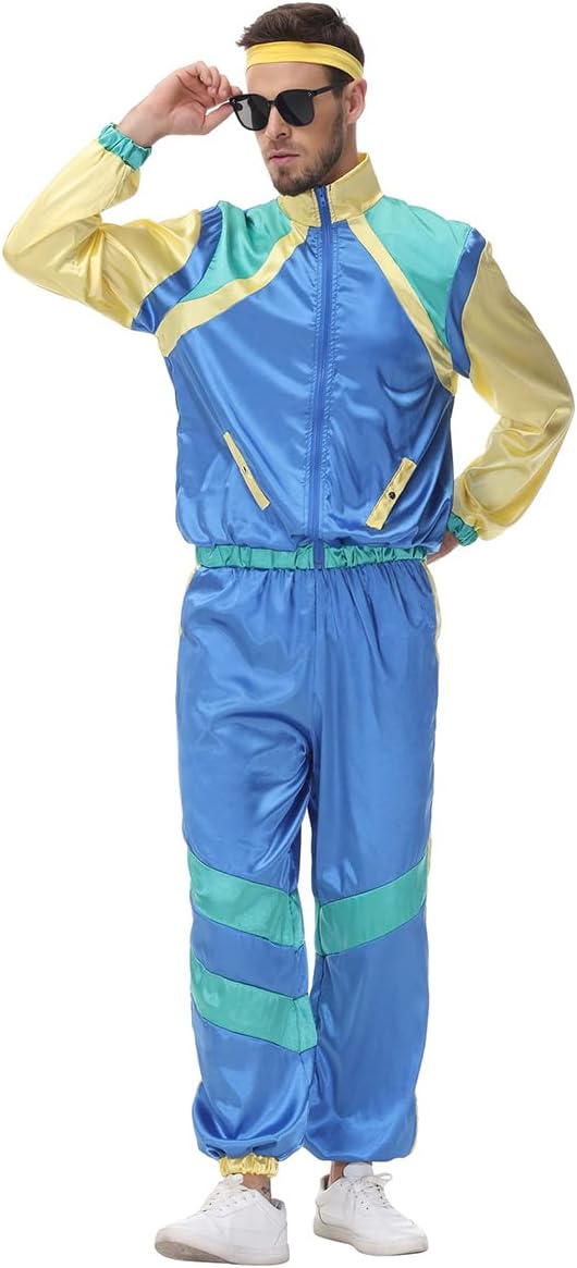 FYMNSI Herren Damen 70er 80er Jahre Outfit Trainingsanzug Jogginganzug Faschingskostüm Halloween Mot