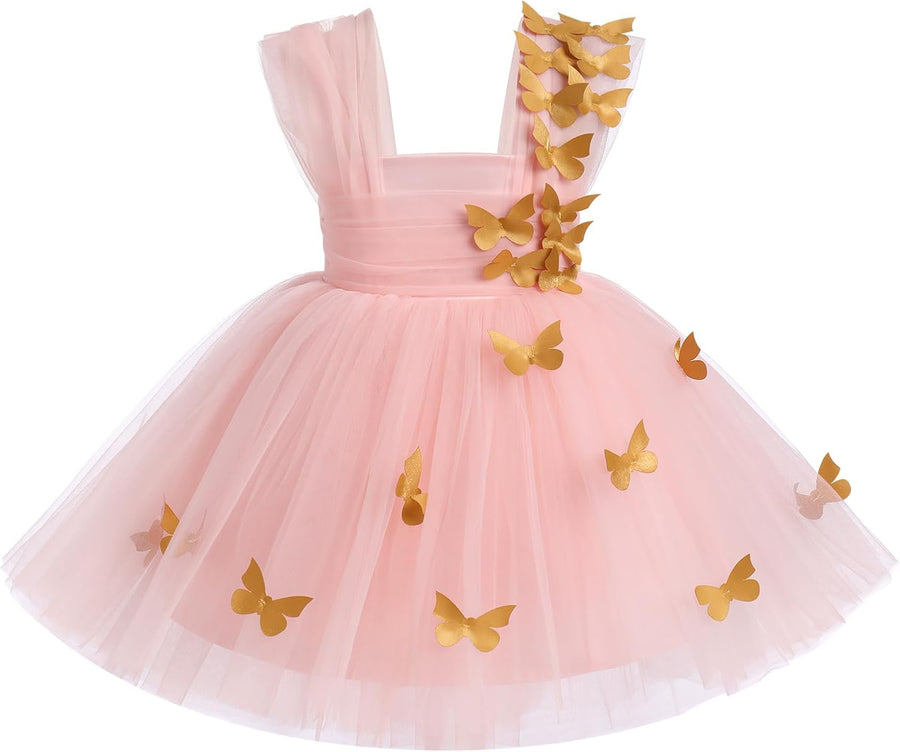 FYMNSI Baby Mädchen Prinzessin Kleid Blumenmädchenkleid Taufkleid Kleinkinder Schmetterling Festlich