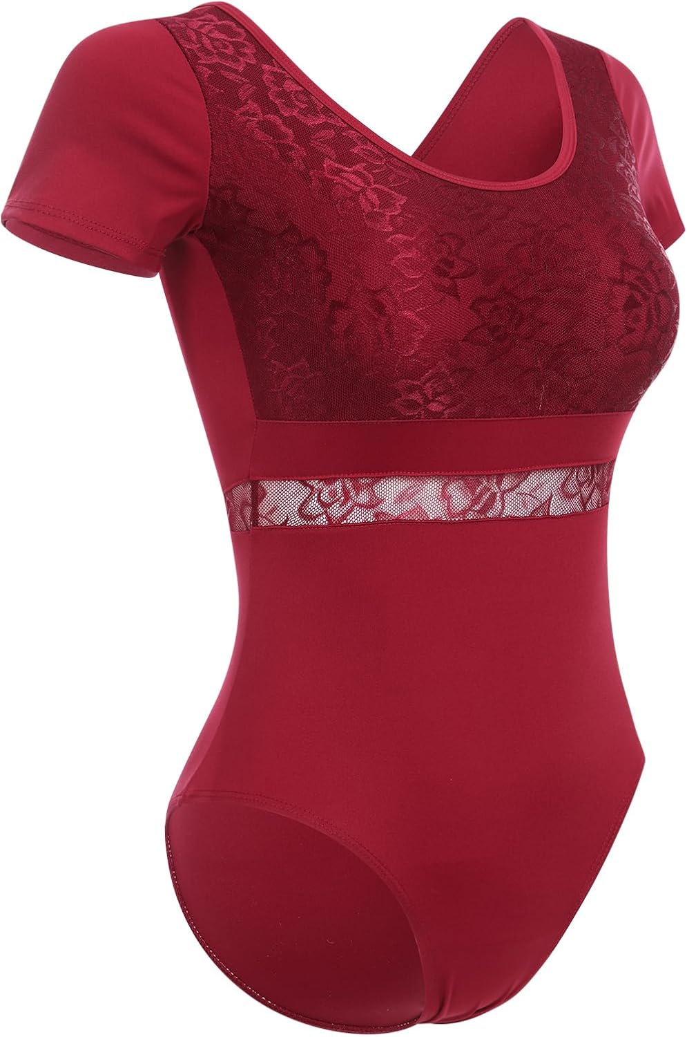 FYMNSI Damen Ballettanzug Gepolstert Ballettbody Tanz Body Gymnastikanzug Trikot Kurzarm Bodysuit XL