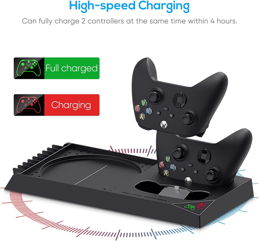 FYOUNG Ständer für Xbox Series X mit Lüfter Kühler und Controller Ladestation, Kühlständer und 1400m