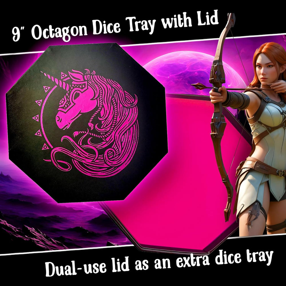 Fantasydice- PINK - War Unicron- Dice Storage and Rolling Tray - 20CM Octagon with Lid and Dice Stag