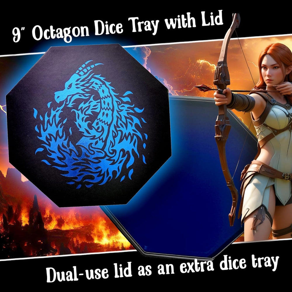 Fantasydice - Feuerdrache - Würfeltablett - 20 cm achteckig mit Deckel und Würfelfelfel-Bereich - fü