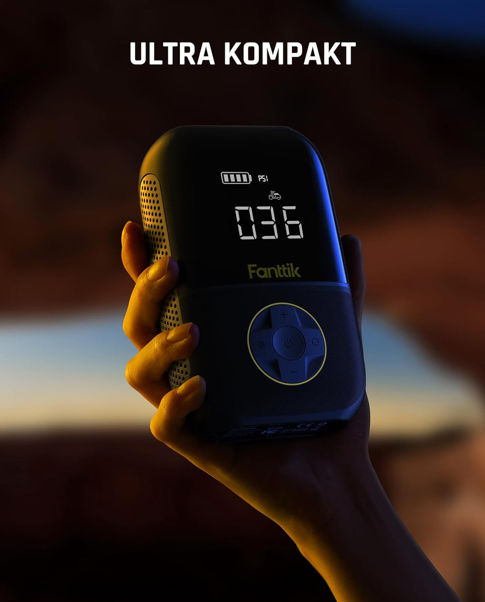 Fanttik X8 Mini Elektrische Luftpumpe, 10,3 BAR/150 PSI Tragbar Fahrradpumpe, Elektrischer Kompresso