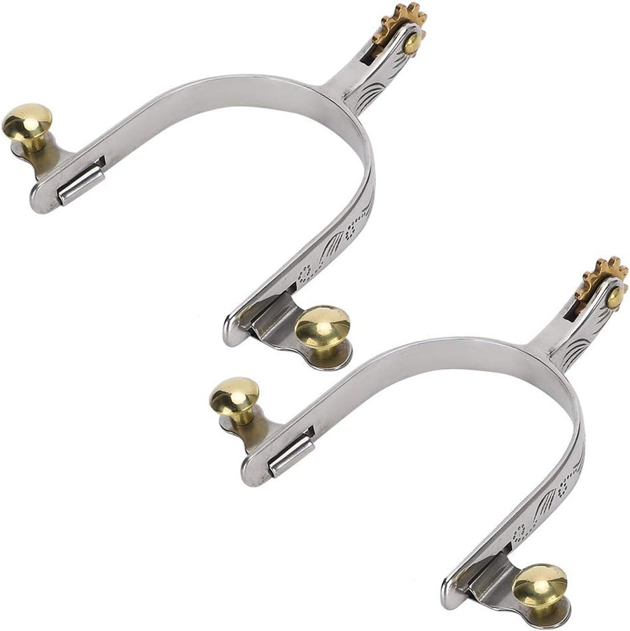 Fdit 2Pcs West Cowboy Style Spur Straps mit Messing Rowel Belt Button für Pferde, Ponys, Esel Rostpr
