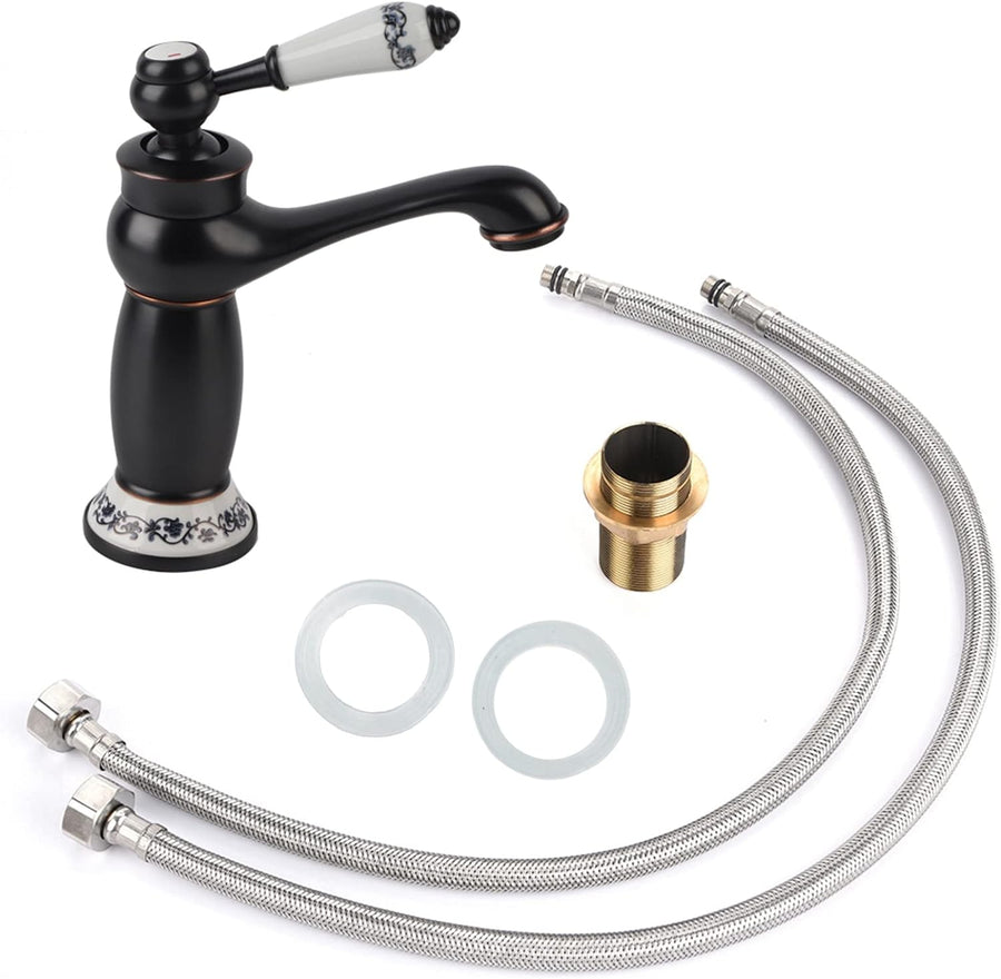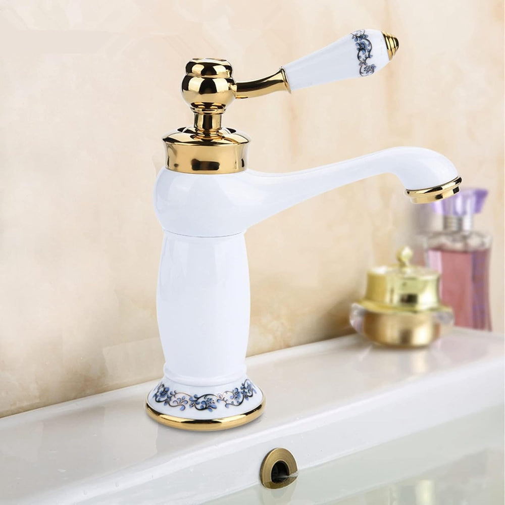 Antik-Keramik aus Messing, Wasserhahn, für Badezimmer, Blau und Weiss, aus Porzellan, langer Hals, V
