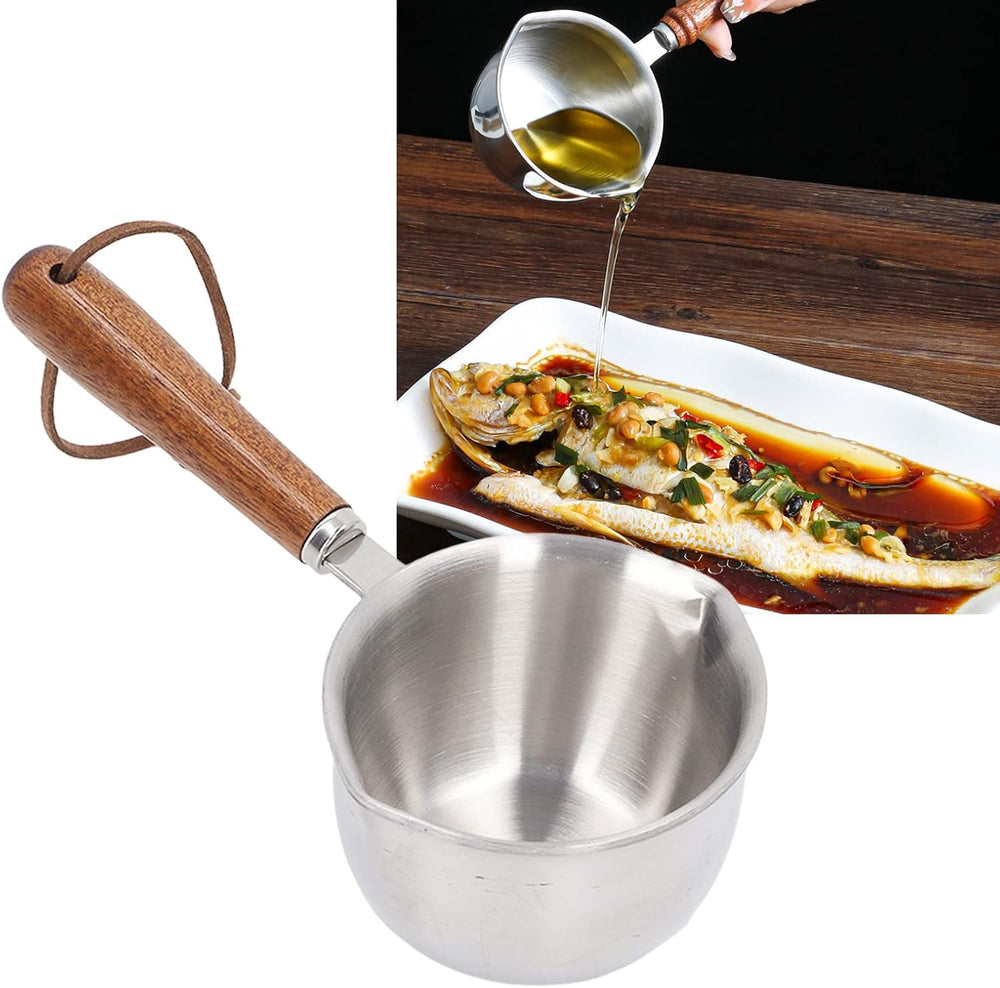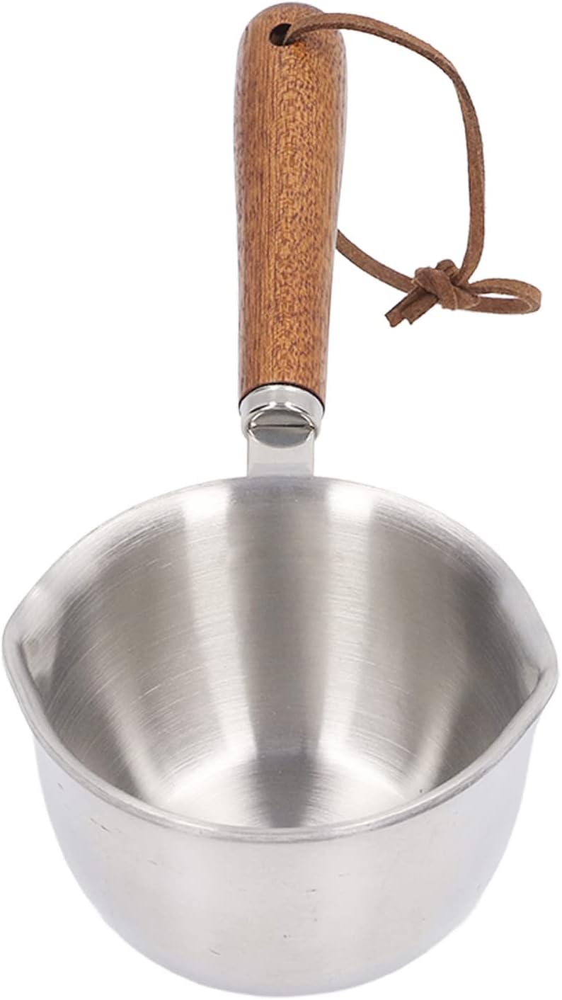Butterwärmer mit Doppelauslauf, Mini-Butterschmelztopf aus Edelstahl mit Holzgriff, Multifunktions-M
