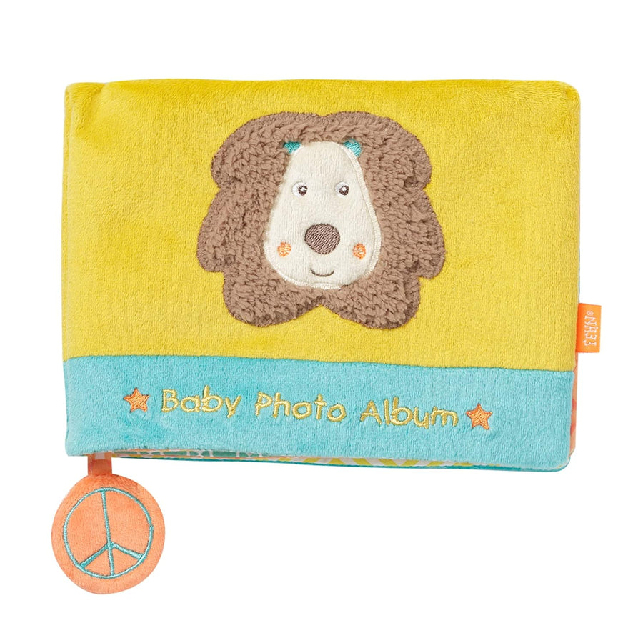 Fehn Fotoalbum Löwe – Erinnerungsbuch Fotobuch zum Selbstgestalten und Fühlen aus Stoff – Babyalbum