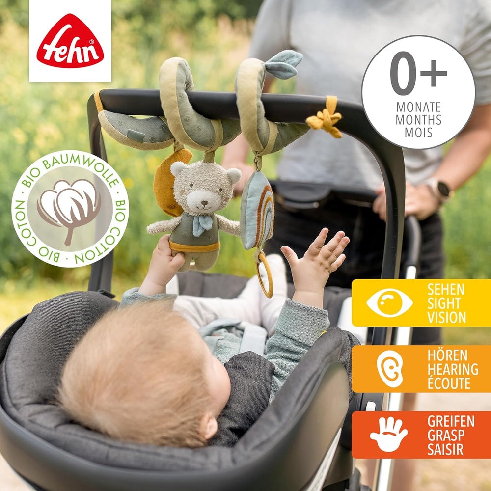 Fehn Activity Spirale Bär fehnNATUR - Kinderwagen Spielzeug zum Fühlen und Greifen - Babyspielzeug f