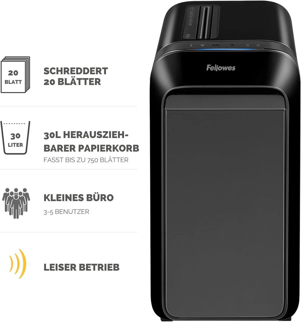 Fellowes 20 Blatt Aktenvernichter Partikelschnitt (P4), Papierschredder für Büro, Homeoffice, Powers