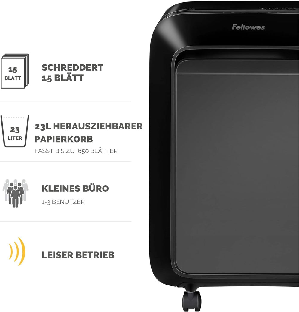 Fellowes 15 Blatt Aktenvernichter High Security (P5), Papierschredder für Büro, Powershred LX211, Mi