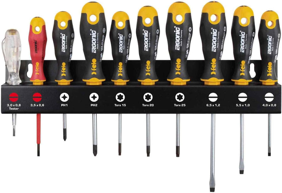 Felo Schraubendrehersatz XL Ergonic VDE mit Werkzeughalter, 10-tlg. SL, PH, PZ, Tx