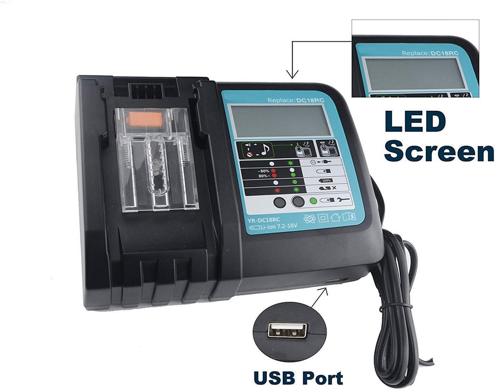 FengBP® DC18RA DC18RC Ersatz 3A Ladegerät mit Led-bildschirm, USB port mit 2 stück 18v 5,0ah für Mak