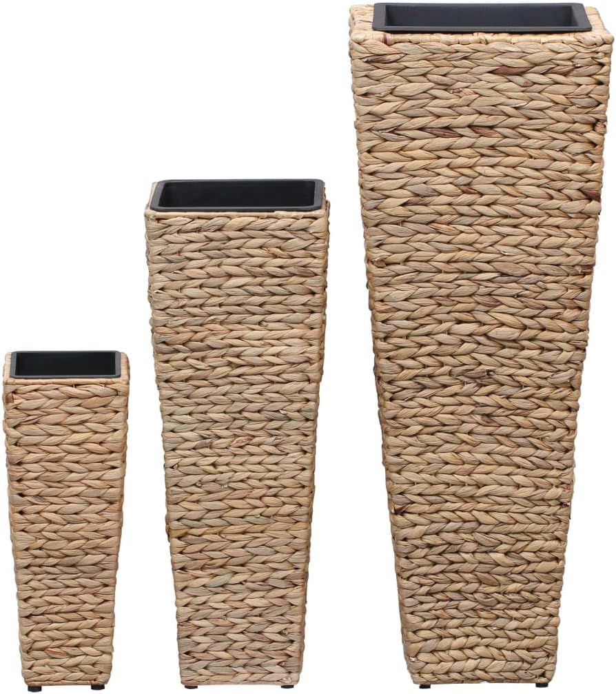 Festnight 3er Set Blumentopf | Pflanzkübel ?bertopf in Poly Rattan Optik | Gro? &Mittel& Klein Pflan