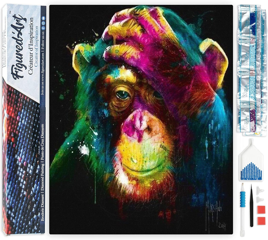 Figured'Art Diamond Painting Erwachsene 40x50cm Ganze Leinwand gerollt Bunter Affe 5D Bilder Eckige
