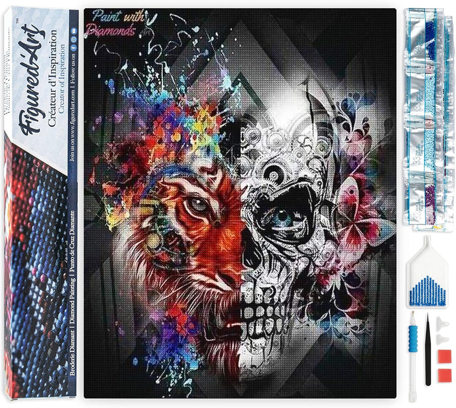 Figured'Art Diamond Painting Erwachsene 40x50cm Ganze Leinwand gerollt Löwe und Schädel 5D Bilder Ec