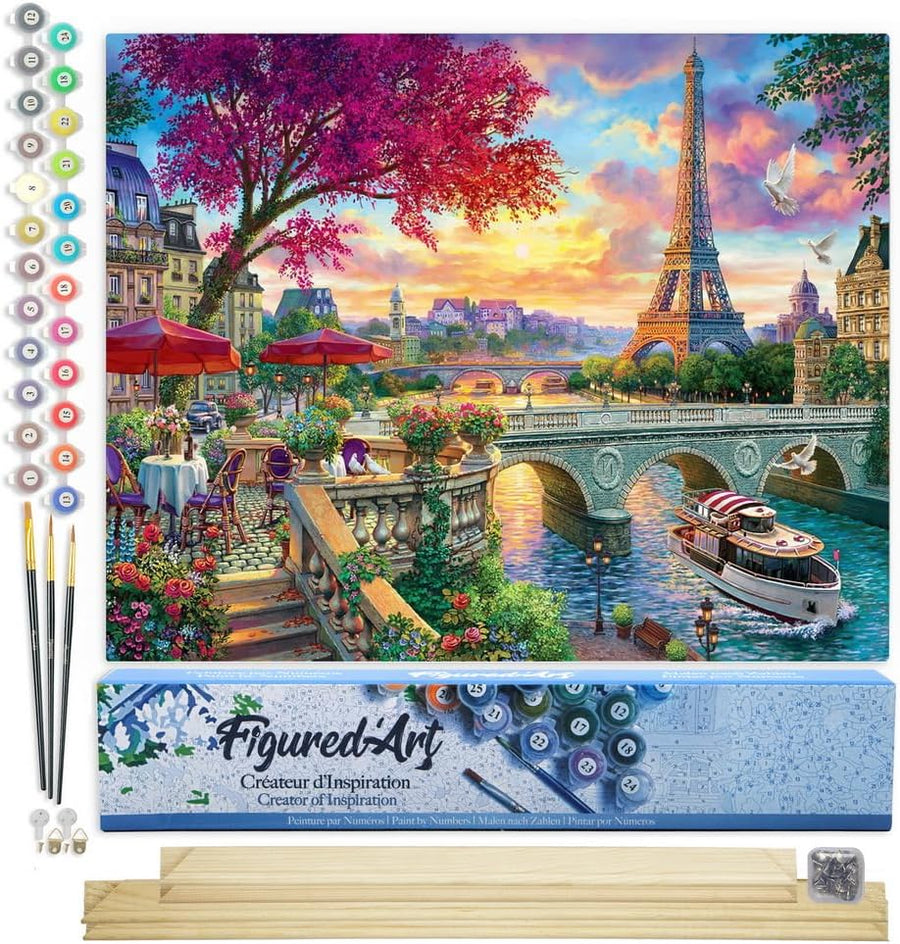 Figured'Art Malen Nach Zahlen Erwachsene Mit Rahmen Abendessen am Ufer der Seine - Paint by Numbers