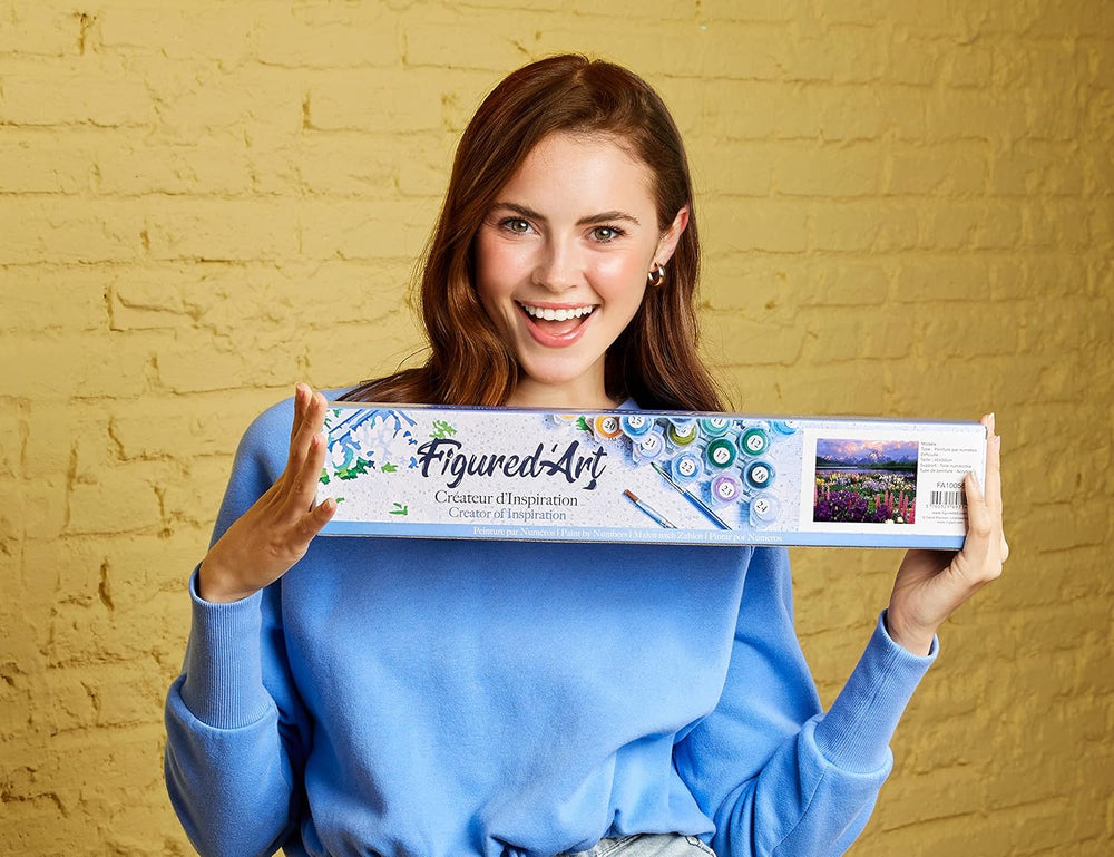 Figured'Art Malen Nach Zahlen Erwachsene Blumen und See am Fusse des Berges - Paint by Numbers Baste