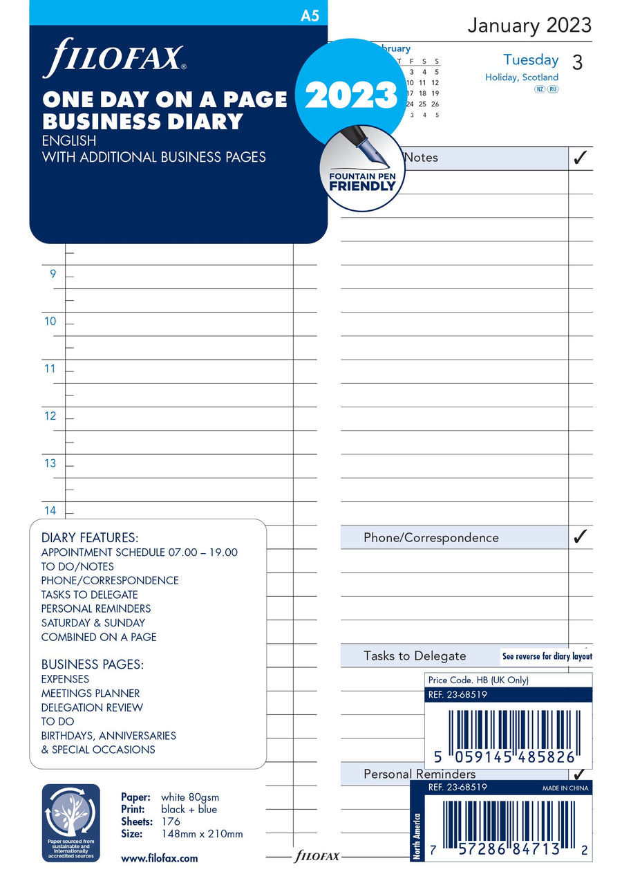 Filofax A5 ENGLISH DAY/PAGE BUSINESS/APPTS 2023, 23-68519, White