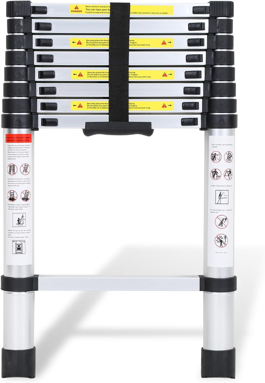 Fiqops 3.2M Aluminium Teleskopleiter, Ausziehbare Leiter 150 kg Belastbarkeit, Rutschfester Aluleite