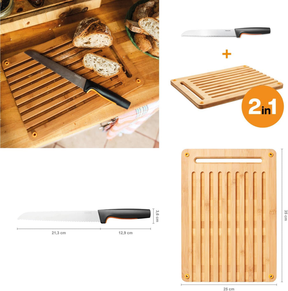 Fiskars Bambus Schneidebrett und Brotmesser, Functional Form, Bambus/Japanischer Edelstahl/Kunststof