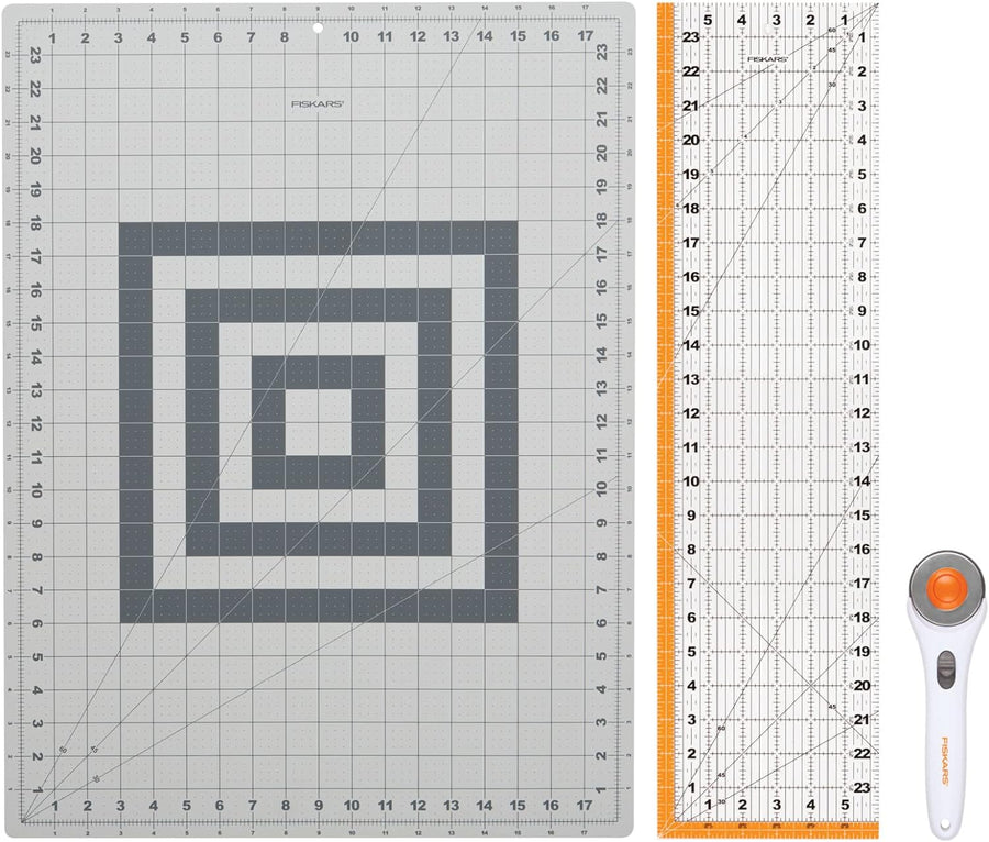 Fiskars Bastel-Starter-Set, 3-teilig, Inklusive Rollschneider, Ø 45 mm (1003736), A2 Schneidematte,