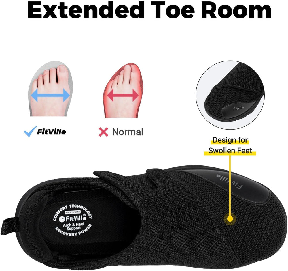 FitVille Diabetiker Schuhe Herren Extra Weite Einstellbar Walking Schuhe für Fussschwellung erweiter