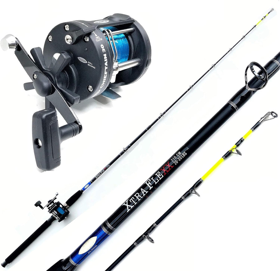 Fladen Fishing Norwegen Angelset Combo Boot Hochsee Rute 2,10m 20-30 lbs/Bootsrute + Multirolle + Sc