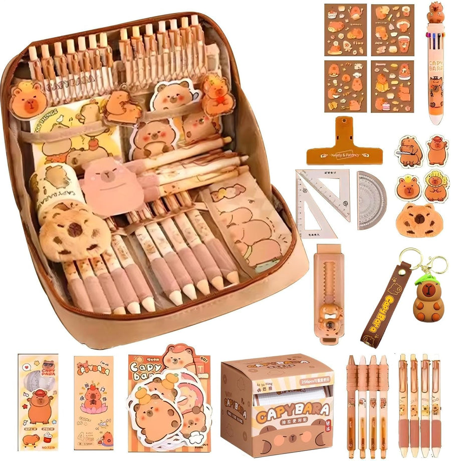 54 Stück Capybara Schreibwaren Set | Federmäppchen Aesthetic Capybara Schreibwaren Sachen MäppchenMi
