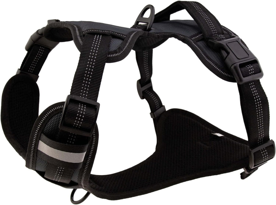 Floxik Hundegeschirr grau XL | Anti Zug Brustgeschirr reflektierend & gepolstert mit Haltegriff für