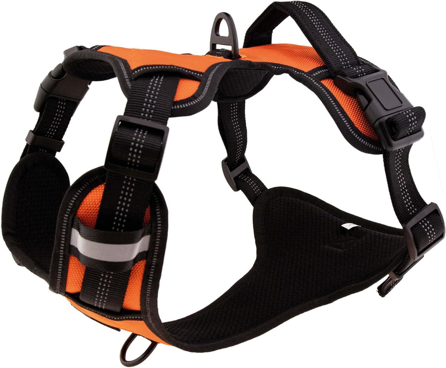 Floxik Hundegeschirr orange L | Anti Zug Brustgeschirr reflektierend & gepolstert mit Haltegriff für