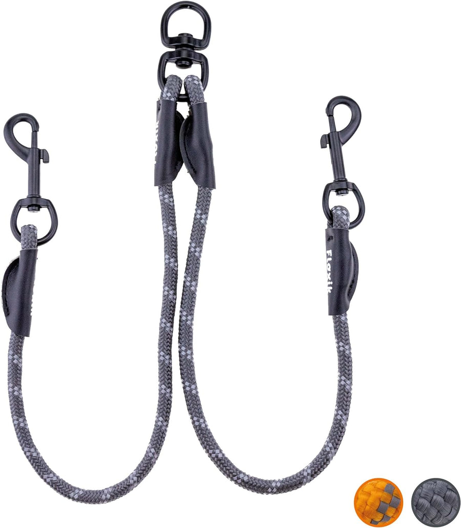 Floxik Doppelleine Komplett-Set gross | Flexible, reflektierende Premium Hundeleine für Zwei Hunde z