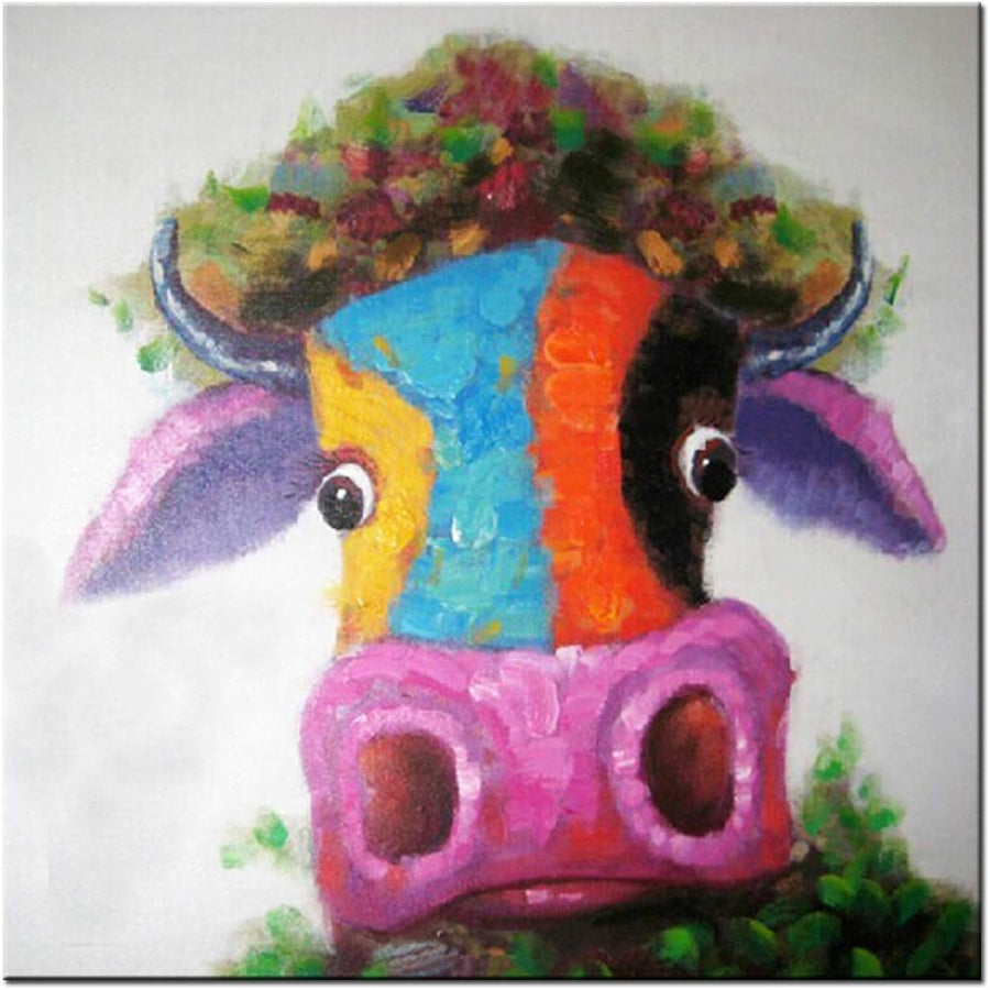 Fokenzary Hand bemalt Malerei Leinwand kleine Stier bunte Pop-Art-Wand-Dekor gerahmt bereit zum Aufh